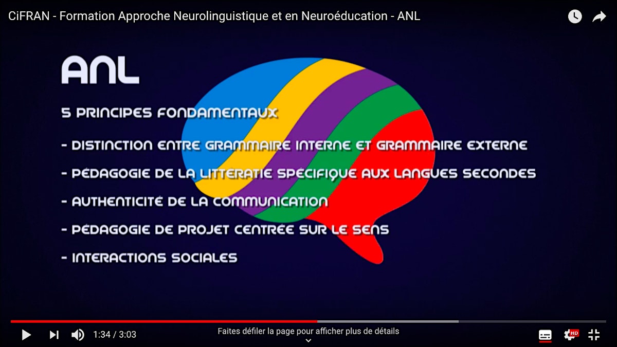 L’approche neurolinguistique (ANL) est un nouveau paradigme pour l’enseignement et l’apprentissage d’une langue seconde ou étrangère en milieu institutionnel. Cette approche a été conçue par Claude Germain et Joan Netten dans le contexte de l’influence émergente des neurosciences en éducation. L’objectif de cette semaine de formation intensive est de livrer aux enseignants de langue seconde ou étrangère, ainsi qu’aux responsables de formation, les fondements théoriques et pratiques des stratégies d’enseignement de l’ANL. La formation, offerte par Steeve Mercier (Ph. D. ; Université Laval) et Olivier Massé (Ing. Form.) se déroule sur une semaine complète et offre aux participants un contenu théorique et pratique. Claude Germain (co-concepteur de l’ANL et professeur émérite à l’UQAM et l’UNCS) agit à titre de conseiller scientifique.